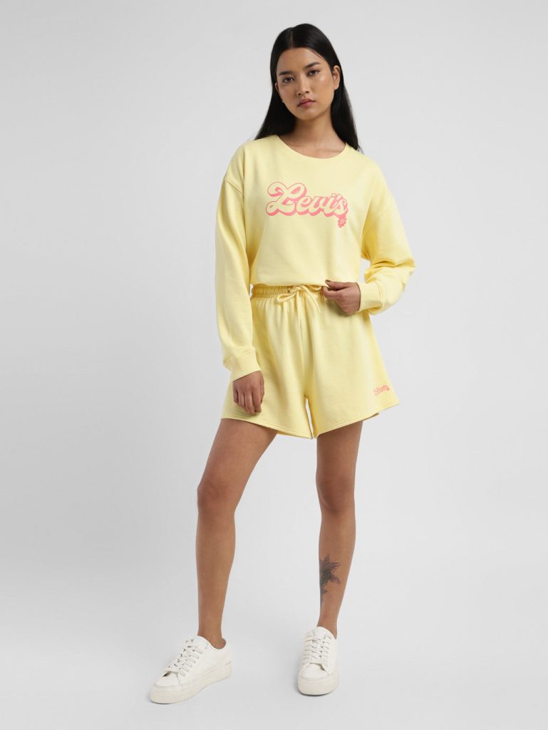 This season, most fashion designers and brands decided that now is the right time for women to wear shorts. After the pandemic, many people stopped wearing pants and instead chose leggings and sweatpants as their go-to summer style. Now, designers are leading a trend towards women wearing more shorts. Levi’s stays abreast of the style-meter with this pair of women’s mid-rise waist shorts in shades of yellow, powder pink and lavender: the perfect addition to a girl’s summer wardrobe! Sport this solid pattern pair in style as you head out into the warm weather, paired with a casual top and chunky sneakers. Made from pure cotton for the wearer’s comfort, the women’s mid-rise regular fit shorts comes in a regular fit for ease of movement and features a knee length—a very chic style that simply never goes out of fashion.