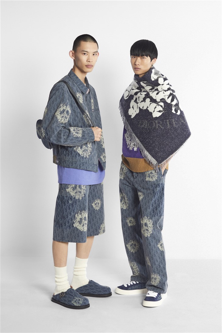 Drawing inspiration from the sartorial elegance of Black Ivy League students and the avant-garde style of jazz musicians from the 1950s and ’60s, “Dior Tears” reimagined classic menswear silhouettes through a contemporary lens. Denim, a fabric historically rooted in American workwear, was reinterpreted with special jacquards and discharge prints, combining American aesthetics with Dior’s craftsmanship. The collection featured tailored pieces alongside casual garments, adorned with motifs like cotton blossoms and collard greens, symbolizing Emory’s African American heritage and the broader African diaspora.