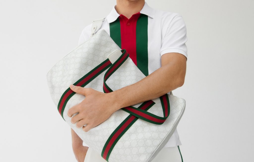 Drawing from the maison’s archival tennis styles, the brand’s new court-ready line reimagined by creative director Sabato de Sarno features the emblematic Web stripe across ready-to-wear, duffle bags, racket backpack, caps, Tennis 1977 and Ace sneakers, for a contemporary consumer.