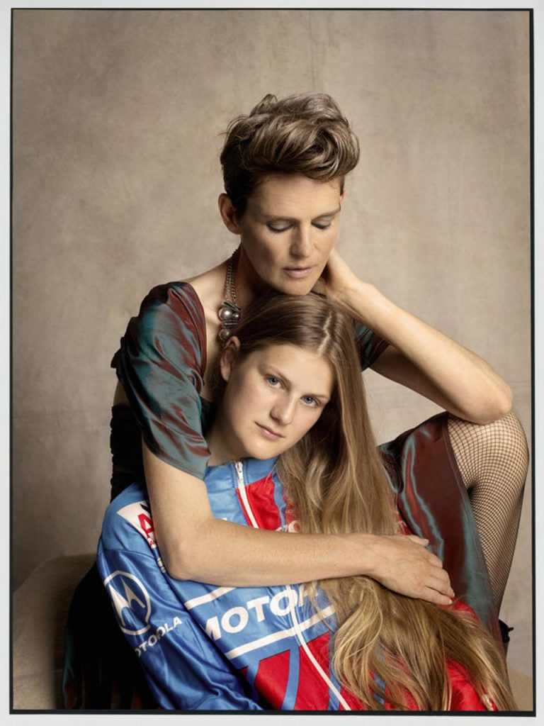 Stella Tennant and her daughter Iris in clothes from Oxfam. Image Credit: Tom Craig.