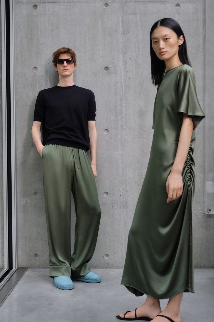 Partnering with environmental organisation ‘Parley for the Oceans’ and its incubator, ‘Future Material’, reinforces their commitment to utilitarian outerwear and trousers crafted with a lightweight Banatex twill: a fabric made from regeneratively grown abacá banana plants; knitwear made with material created from upcycled plastic yarns; soft fleece loungewear made from regenerative cotton; and activewear pieces in recycled elastane.