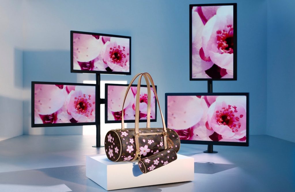 The Cherry Blossom motif will feature on more than forty new pieces including Papillon bags, platform sandals and the Courrier Lozine 110 Fleurs trunk. Those featured in the campaign with Zendaya include new versions of Louis Vuitton Capucines Mini and OnTheGo.