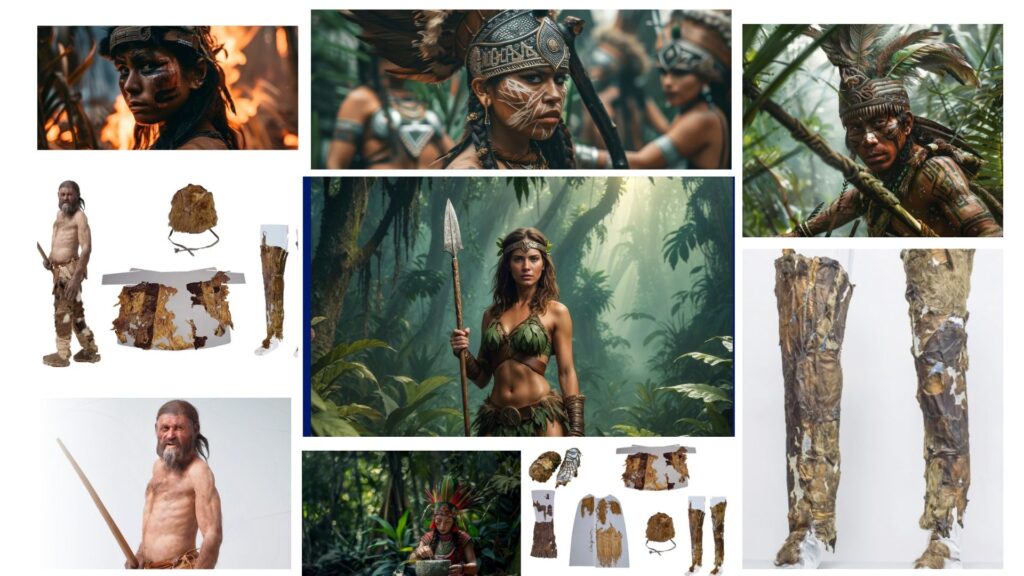 Ötzi the Iceman, preserved in alpine ice for over 5,000 years, provides us with a remarkable window into pre-historic fashion sophistication. His ensemble was not a crude assemblage of animal skins but a carefully constructed outfit comprising a long-sleeved fur coat, leather leggings, a loincloth, grass-stuffed leather boots, and a fur cap. Each piece was precisely fitted, sewn with sinew, and designed for both functionality and durability. Here was pre-historic haute couture—clothing that protected whilst expressing the wearer’s understanding of tailored construction and aesthetic balance.