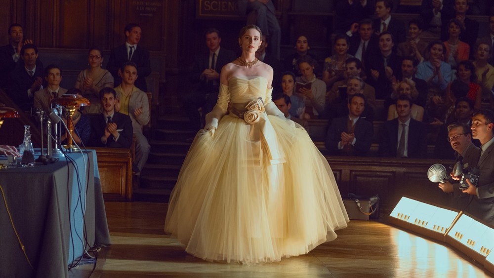 “Dior was very generous in opening up its archives to us,” costume designer Karen Serreau tells The Hollywood Reporter. “The way Todd has crafted the story, early on we see Christian talking to an audience at the Sorbonne in 1955, with a runway showing of several designs, and then of course later we see the debut showing of the 1947 collection. Dior worked closely with us on choosing the outfits that would work for the project, and they played a big role with sketches, fabric swatches and photographs. In some cases they had fabrics hand-dyed or made up for us — a 1947 leopard-print dress, for example, they recreated that fabric for us.”