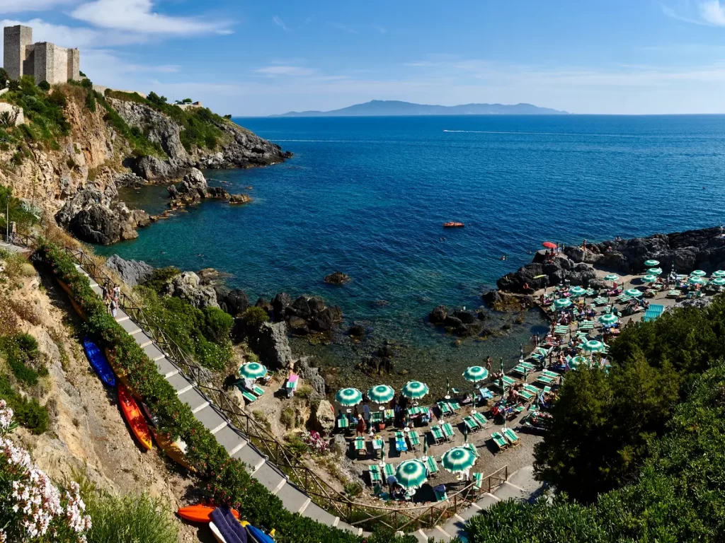 Often referred to as the best beach in Tuscany, it is a kid-friendly beach with fine sand, limpid waters, and even a snack bar if you want to grab something to eat. Plus, you get to leave your car very close to the beach (you may drive almost all the way to the sand), which is hugely convenient if you carry beach stuff with you that needs unpacking and carrying (i.e., umbrella, sun chairs, kids’ toys, etc.). Just pay attention to the instructions of the life guards at Feniglia, who mark off the calmest and safest sections every single day, so you have nothing to worry about when it comes to the current in this particular coastal area.
